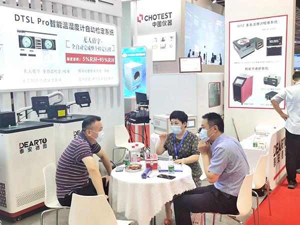 泰安德圖自動化儀器有限公司已連續(xù)四屆應(yīng)邀參與盛會,作為溫度、濕度計量儀器的專業(yè)制造商,本屆展會展示了無人值守-溫濕度計全自動拍照、識別系統(tǒng)、無線智能溫濕度巡檢儀、8通道智能精密測溫儀、主動排煙智能恒溫油槽、手持式微型干井爐等多款新產(chǎn)品,讓更多的客戶能現(xiàn)場體驗泰安德圖的智能化產(chǎn)品及先進技術(shù)。參展期間,公司展品不僅受到了眾多計量同行、計量院所老師及不同行業(yè)不同領(lǐng)域客戶的一致好評,有多家客戶直接現(xiàn)場付款訂購產(chǎn)品。
